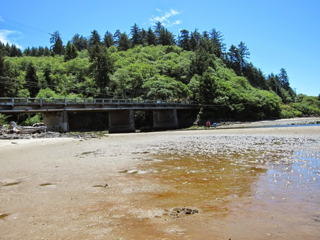 There is a stream that flows under a bridge and into the area (see below). Greg and Kylen had a blast wading up it. They noticed it rising as the tide came in, maybe four inches deeper by the time they left. Most of this beach gets covered with water at high tide. Amazing how the landscape on the coast transforms every single day.